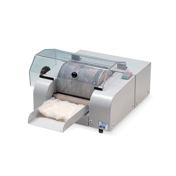 Данная малогабаритная кардочесальная машина предназначена для формирования чистого и однородного образца сырого хлопка и используется совместно с анализатором сорных примесей и пороков хлопка модели NATI.