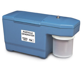В некоторых местах концентрации микроскопических частиц в окружающей среде оказывается недостаточно для проведения испытаний по проверке пригодности респираторов с помощью измерительных приборов PortaCount Pro+. Такая ситуация может быть вызвана наличием высокоэффективных фильтров в вентиляционной системе, необычными условиями окружающей среды и другими факторами. Генерирование частиц с помощью горелки может решить проблему, но многие организации не разрешают применять открытое пламя в помещениях. Генератор частиц производит невидимый аэрозоль из частиц нетоксичных солей в соответствующем размерном диапазоне, необходимом для определения критериев пригодности респираторов. Работа генератора частиц заключается в распылении водного раствора соли в мельчайшие капли, а затем в выбросе их в воздух. Вода в каплях практически мгновенно испаряется, но при этом растворённая соль сохраняется.