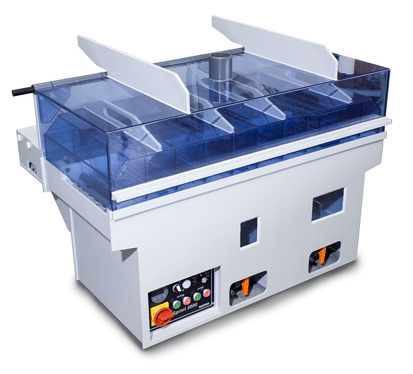 Отличительной особенностью является полностью съемное подающее устройство, позволяющее легко проводить очистку, которое может легко удлиняться и укорачиваться в широких пределах, что позволяет адаптировать установку к требованиям потребителя и изменять ее конструкцию. Ширина конвейера стандартной установки 300 мм (SPRINT 3000), но возможно – 450 мм (SPRINT 4500) и 600 мм (SPRINT 6000).